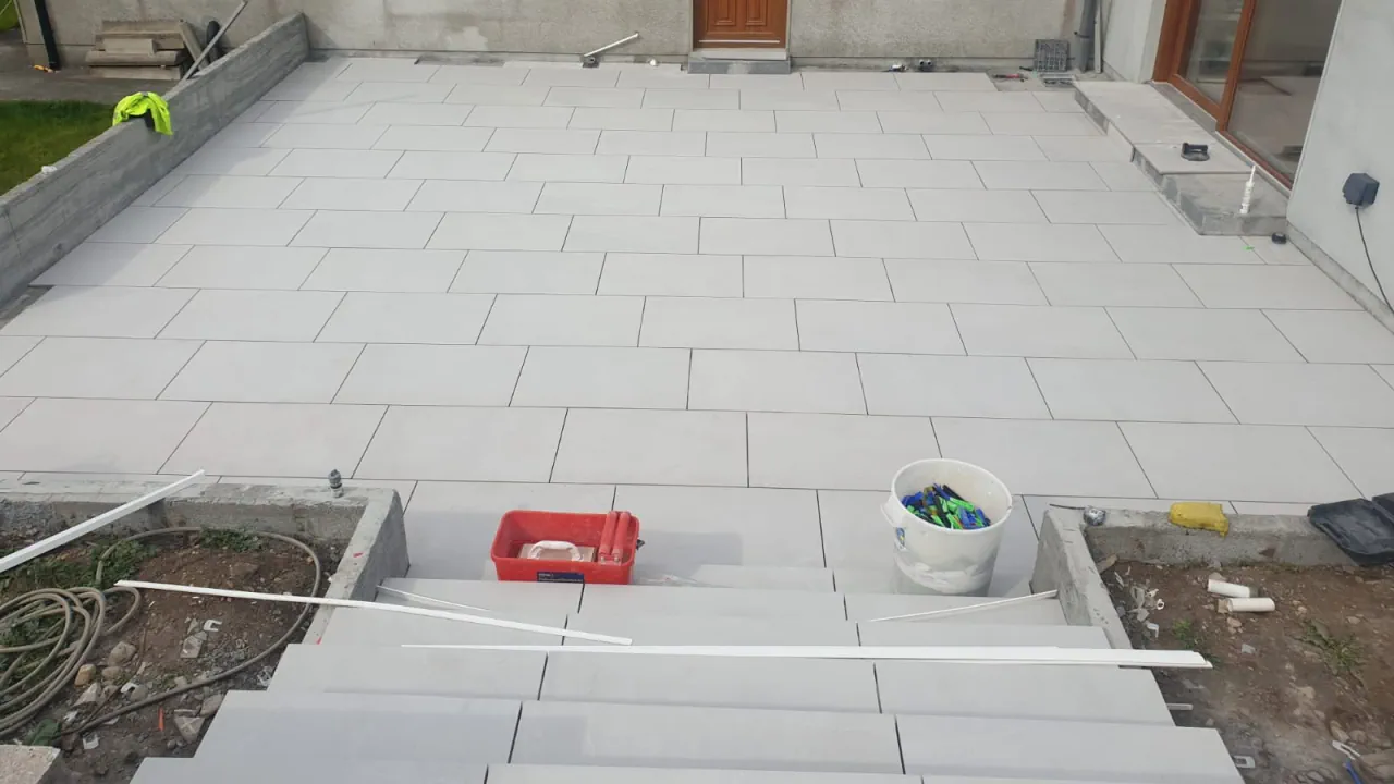 Porcelain paving, limestone, granite, and sandstone are all popular patio materials in Ireland. Porcelain patios are particularly popular due to their durability and low maintenance, while natural stone options provide a classic appearance.
